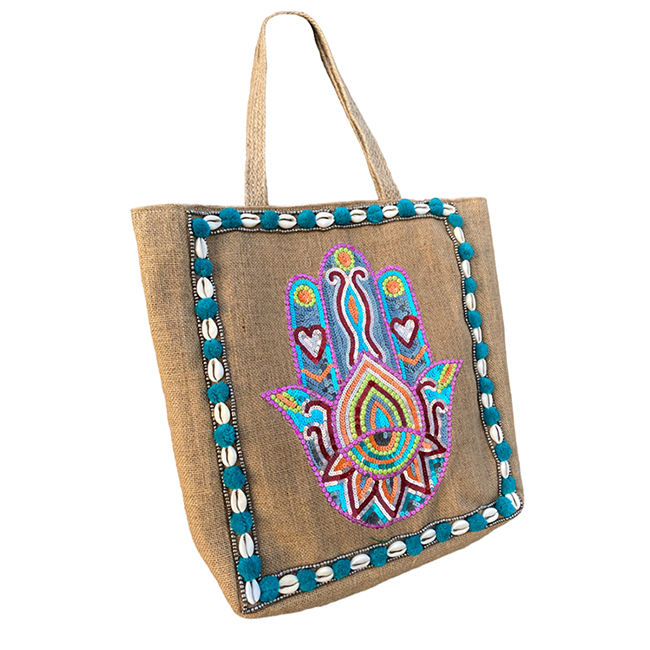 Wholesale Price Bohemian Chic Tote Large Jute Beach Handbag Tassel Pompom Women's Fashion Accessories Including Long Zipper