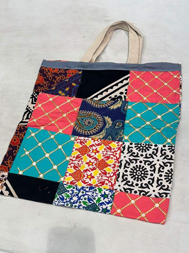 Wholesale Price Bohemian Style Women's Jhola Bag Fashionable Open Cotton Two Custom Size Patchwork Leather Shoulder Purse