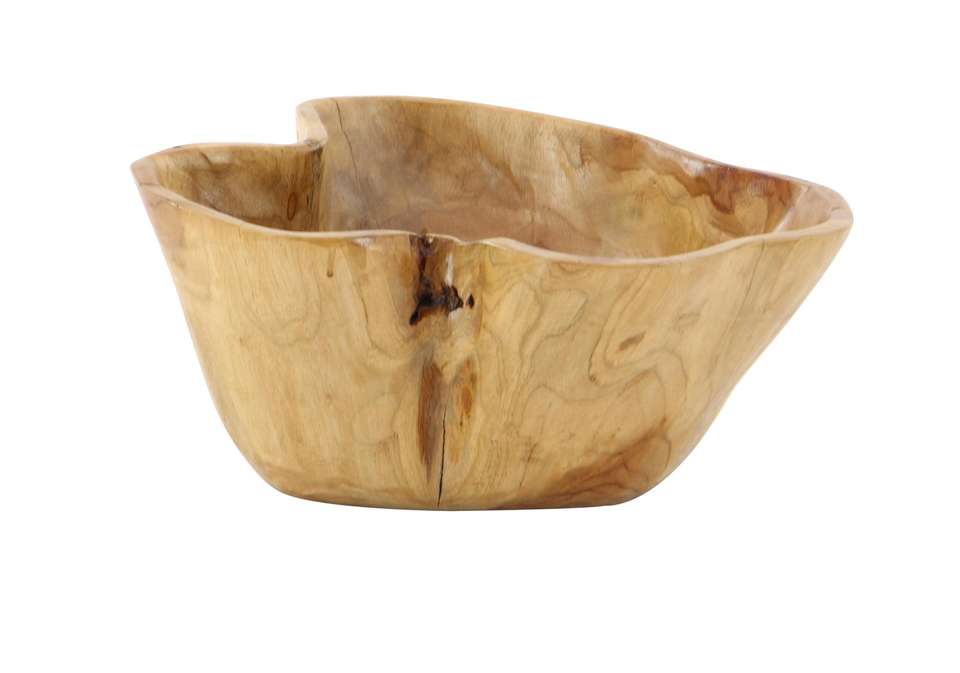Wholesale Price Brown Teak Wood Handmade Live Edge Free Form Decorative Bowl, 14" X 12" X 6"
