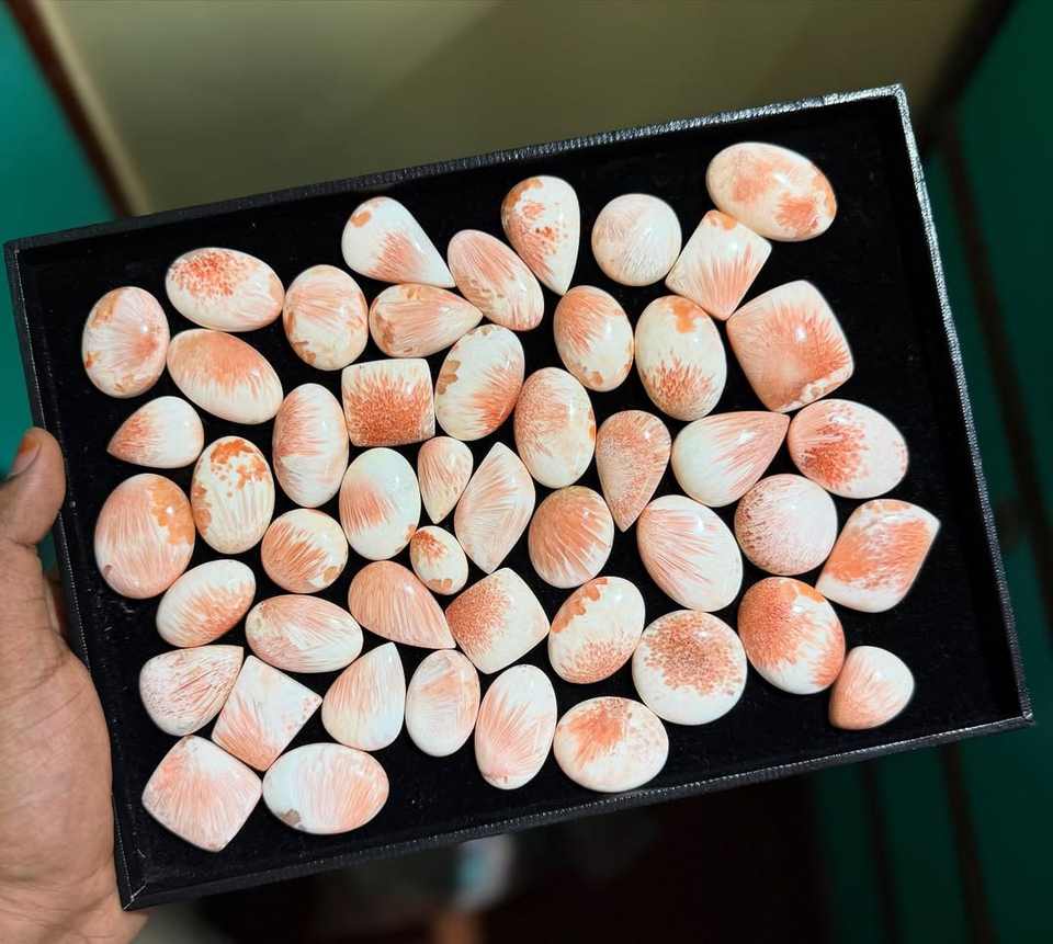 Wholesale Price Bulk Natural Pink Scolecite Cabochon Loose Orange Quartz Crystal Semi-Precious Healing Crystal Sale On! Buy Now!