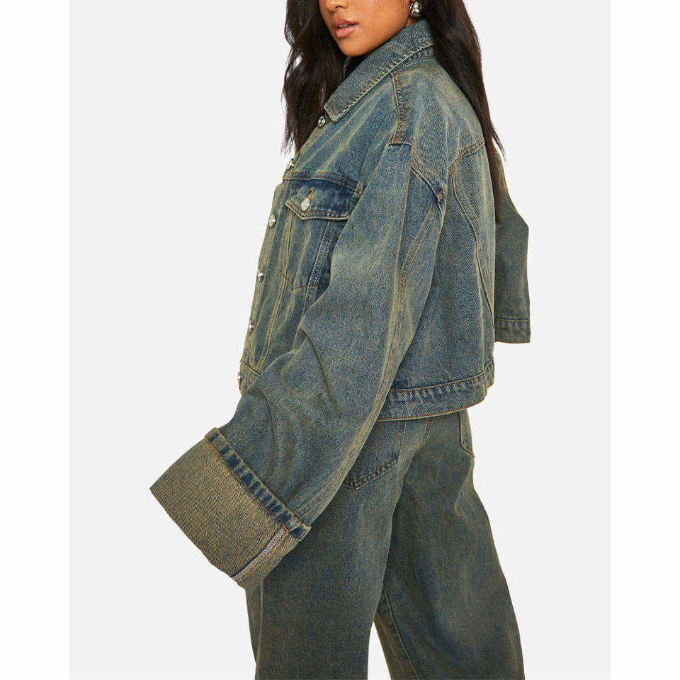 Wholesale Price Crop Women's Denim Jean Jacket Latest Style Denim Material Made Women Crop Denim Jacket