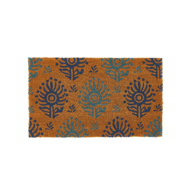 Wholesale Price Custom Design Indian Coconut Coir Rugs Doormat Modern Natural Tufted PET Friendly Non-Slip Floor Mat Ikat Blues