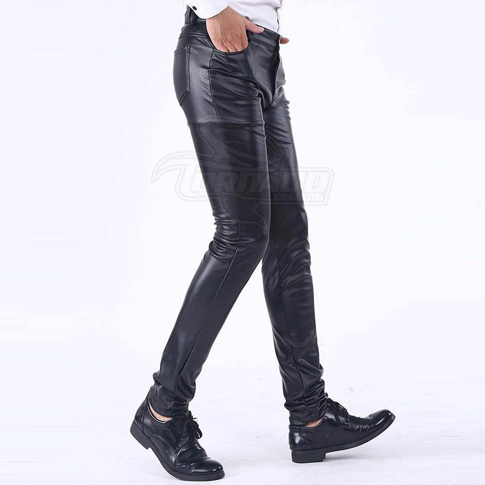 Wholesale Price Custom Made Straight Lightweight High Waist Leather Pants for Men with Custom Logo Unique Design Button Fly