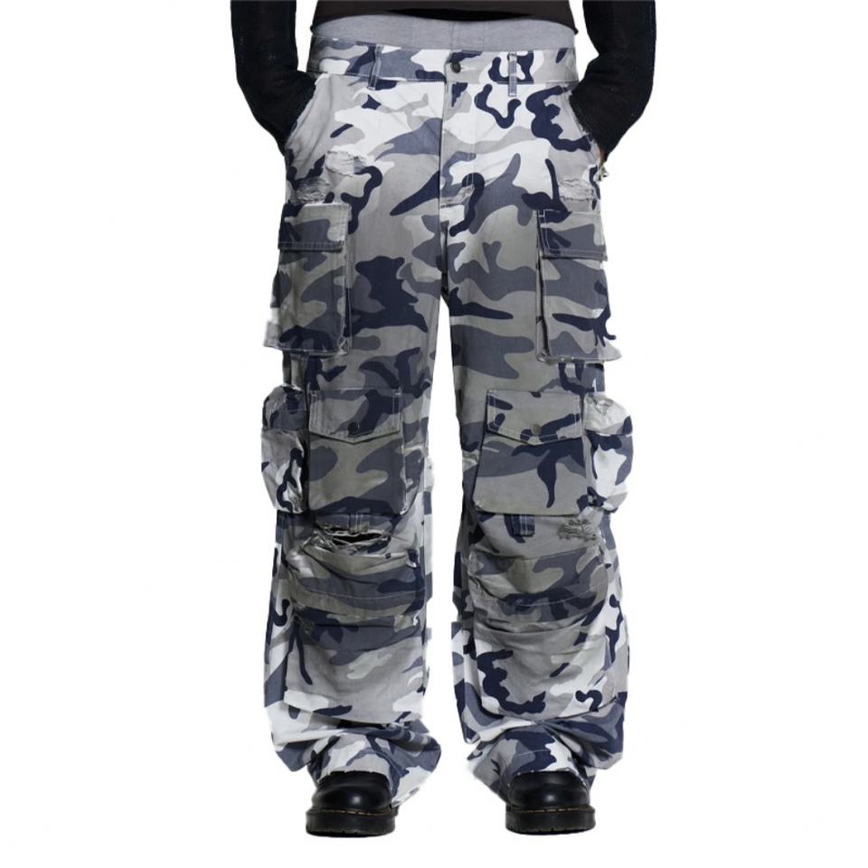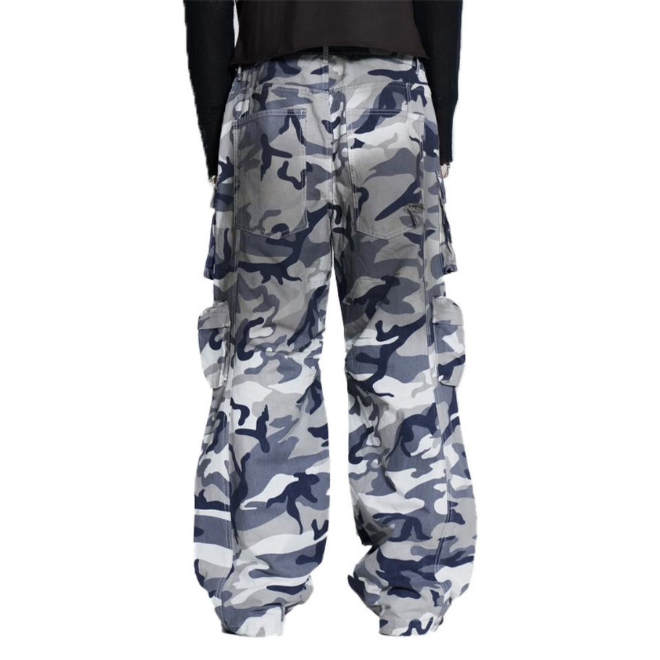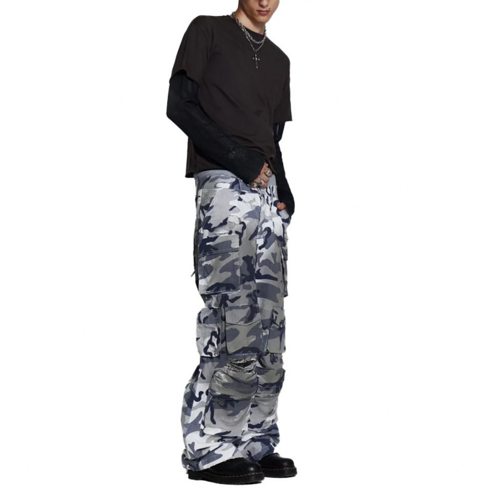 Wholesale Price Custom logo Fashion Dirty Effect Camo Cargo Men's Pants Streetwear Multi-pocket Dark Camo Cargo Pants