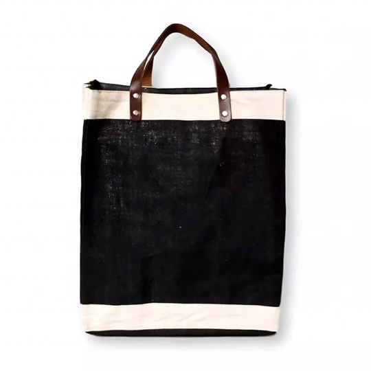 Wholesale Price Customized Jute Burlap Shopping Bag with PU Leather Handle for Everyday Use