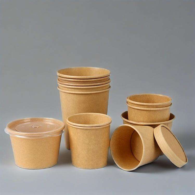 Wholesale Price Disposable Kraft Paper Porridge Cup and Soup Bucket for Breakfast Takeout Includes Plate and Bowl