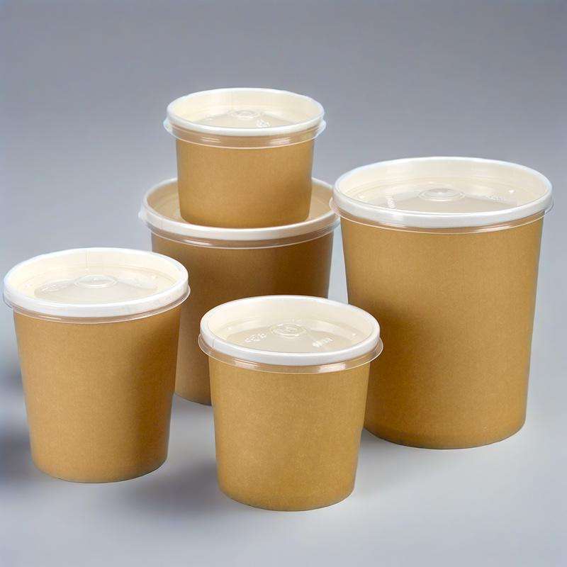 Wholesale Price Disposable Soup Bucket Kraft Paper Porridge Bucket Paper Bowl With Lid in Stock Paper Cup