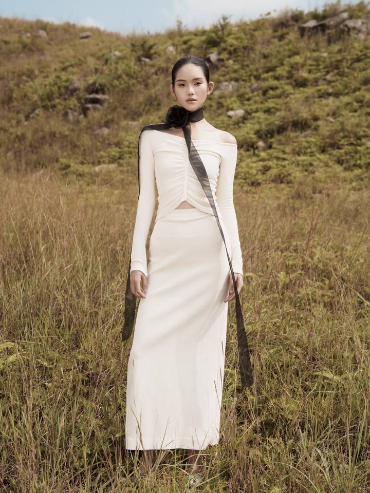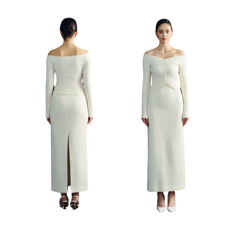Wholesale Price ERICA PENCIL SKIRT Hand-beaded 88% Cotton 11% Polyester 1% Spandex Long Women's Skirts Made in Vietnam