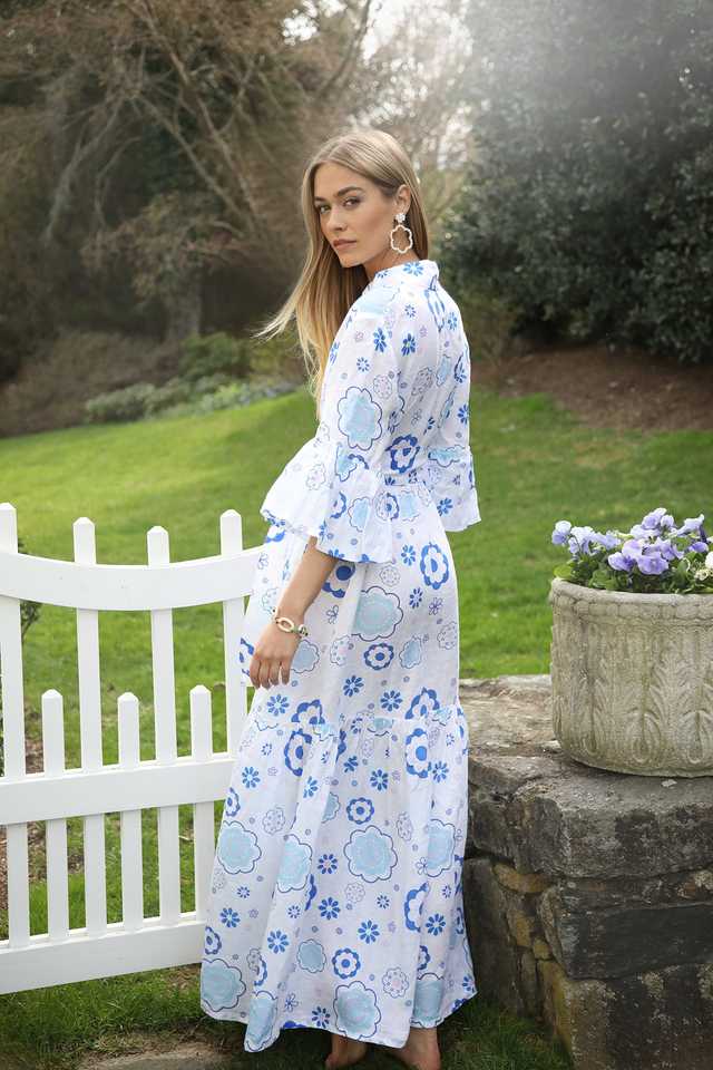 Wholesale Price Floral Print Three Quarter Sleeve Floor Length Bohemian Gypsy Long Maxi Dress