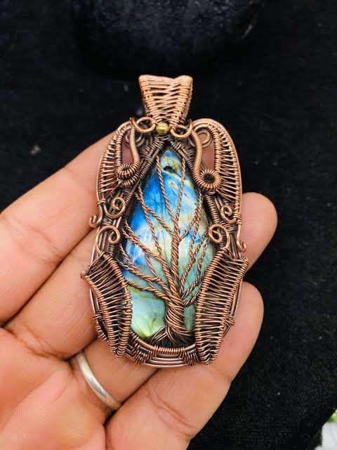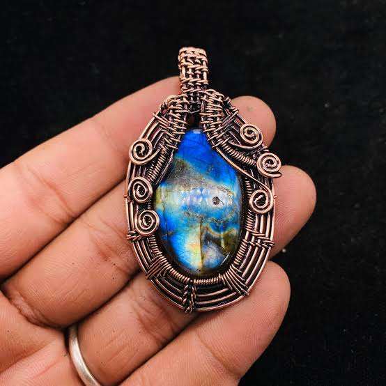 Wholesale Price Gold Plated Brass Labradroit Gem Malachite Prong Set Pyramid Shape Wire Wrapped Vintage Pendant Wedding Gift