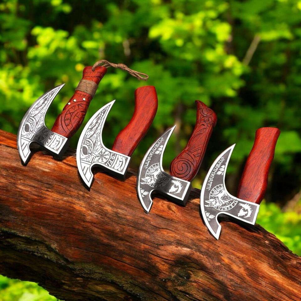 Wholesale Price Handmade High Carbon Steel Pizza Cutter Viking Pizza Axe With Custom Engraving and Leather Sheath