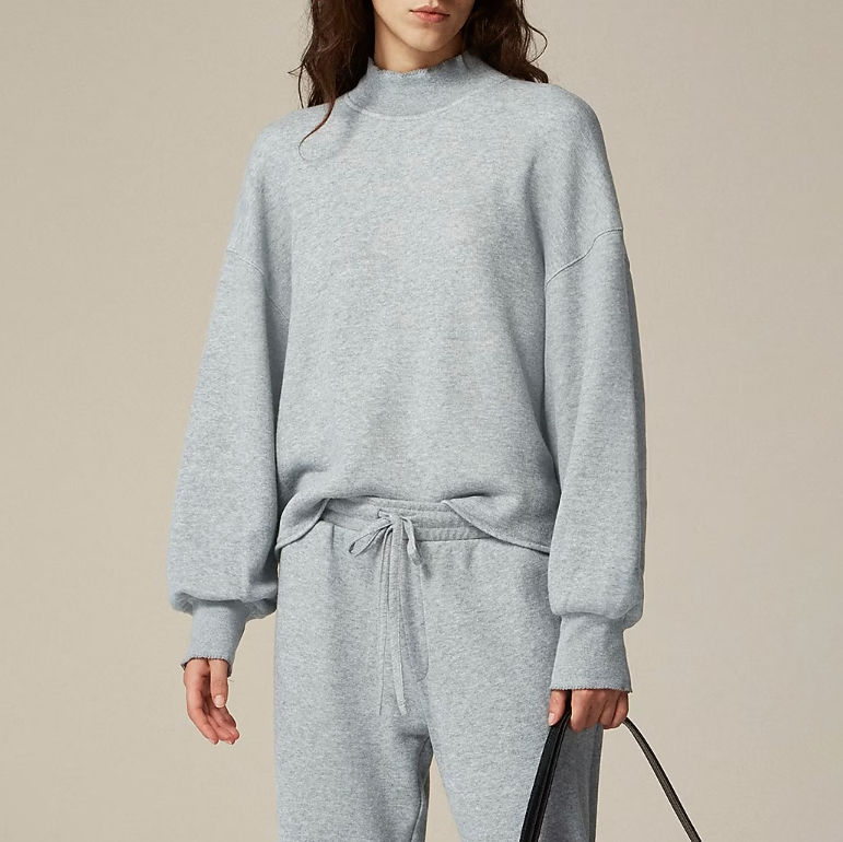 Wholesale Price High Quality 100% Cotton Fleece Lightweight Mockneck Drop Shoulder Solid Breathable Front Custom Printing Women