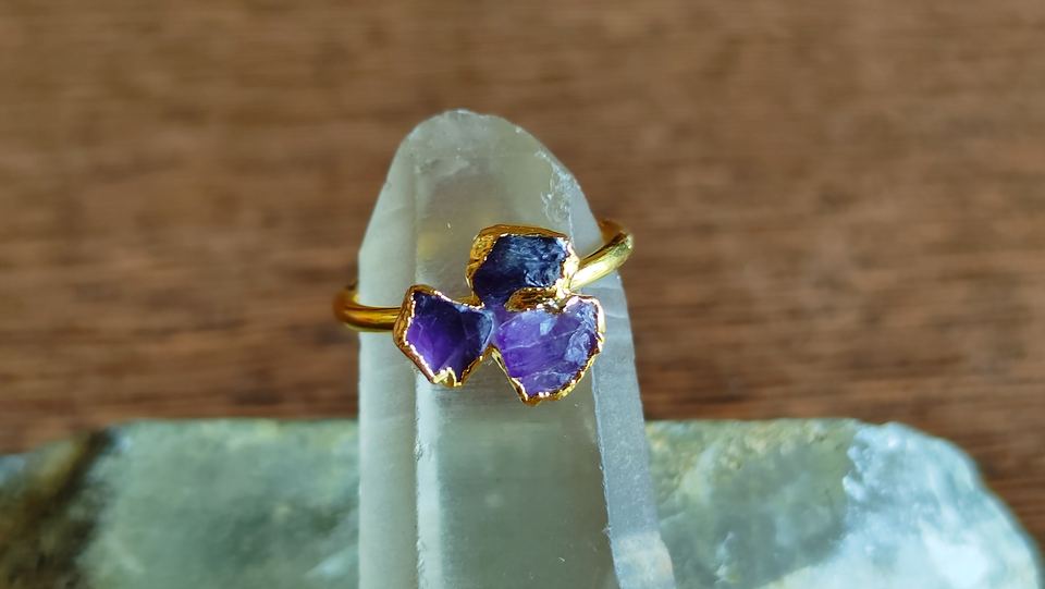 Wholesale Price India Multi-Color Amethyst Gemstone New Trendy Fashionable Adjustable Rings Women Fine Electro-Plated Gold ODM