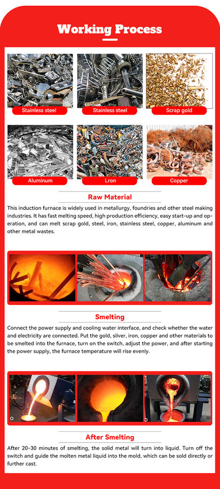 Melting Material:Scrap Steel Iron Gold Copper Aluminum