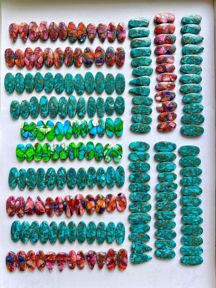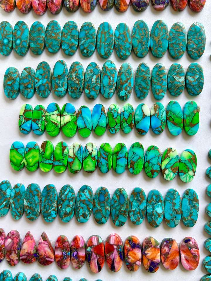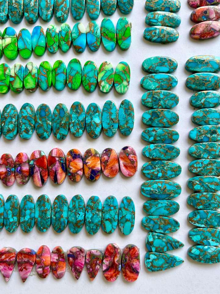 Wholesale Price Mix Colors Spiny Oyster Copper Turquoise Pair Cabochon Natural Gemstone for Jewelry Making Polished Pair Stone,