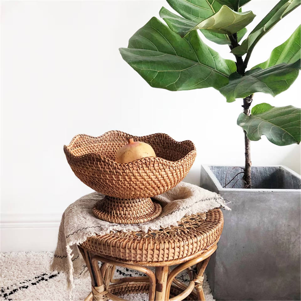 Wholesale Price Natural Rattan Fruit Basket Sustainable Design Storage Rack for Home Kitchen Living Room Organization