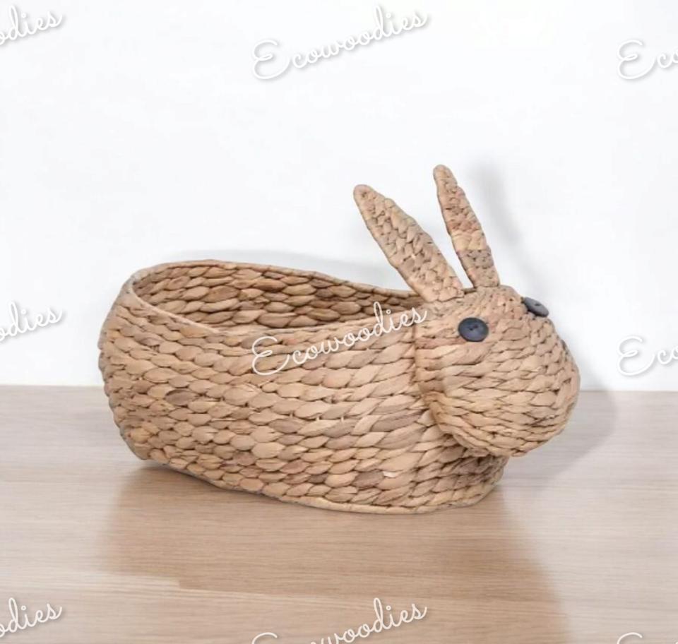 Wholesale Price Natural Water Hyacinth Kids Rabbit Shape Laundry Basket Nursery Decor & Toy Storage Solution for Wardrobe