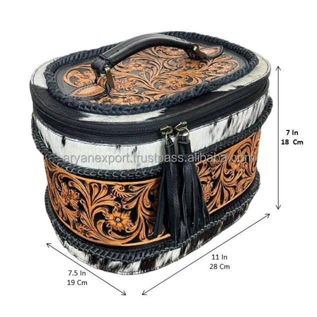 Product Name:Hand Tooled Cowhide Leather Large Jewelry Case
