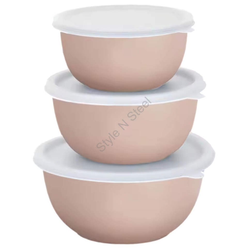 Wholesale Price Premium Euro Bowl Set With Lid 3-Piece Metal Round Bowl in Multi-Colours 450 ml 700 ml 1200 ml Sizes