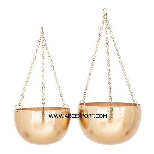 Wholesale Price Rose Gold Plated Metal Hanging Planter Decorative Ball Shape Balcony Hanging Plant Holder Garden Decor Supplies