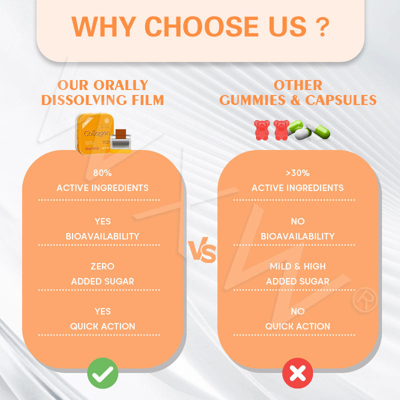 Wholesale Price Skin Whitening Collagen Supplement Fast Dissolving Oral Film Collagen Gummy Candy Dosage Form