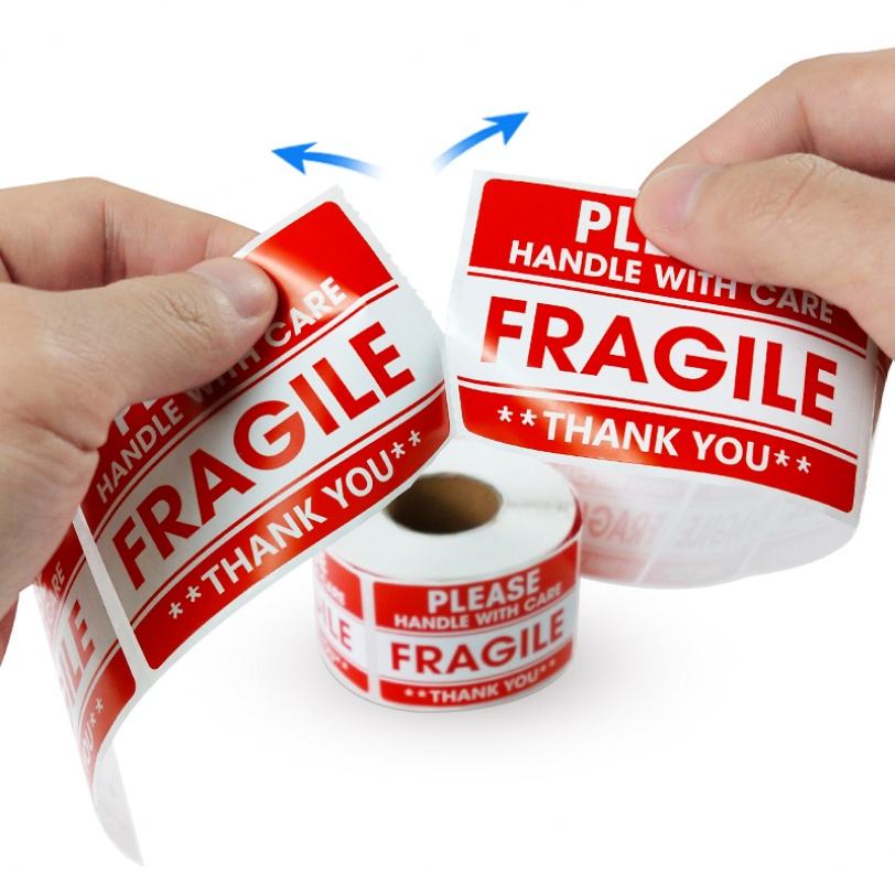 Wholesale Price Top Quality Warning & Fragile Label Waterproof Custom Red Private Labels for Glass Cup Shipping