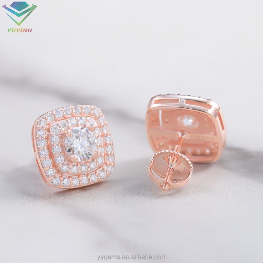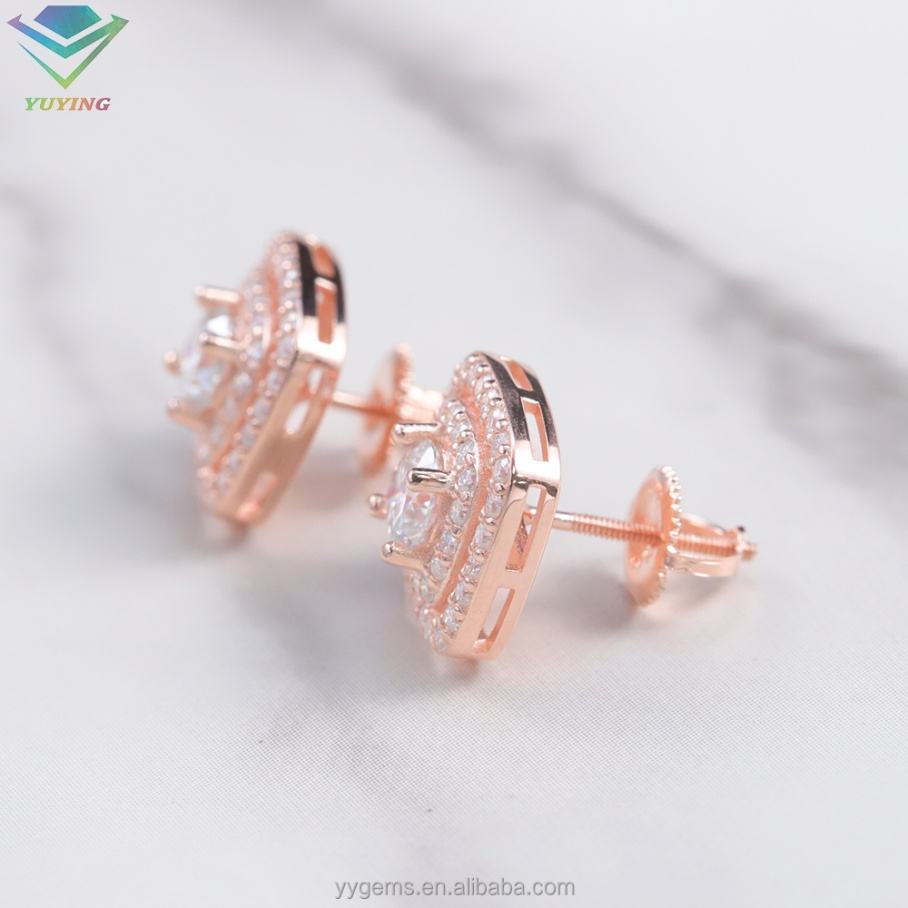 Wholesale Price Trendy Earrings S925 Silver White/rose Gold Plated D Color Vvs Moissanite Women Girl Jewelry Stud
