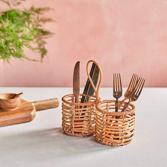 Wholesale Price Water Hyacinth Cutlery Holder Rattan Caddy Basket Holder High Quality Wicker Caddy for Home Kitchen From India