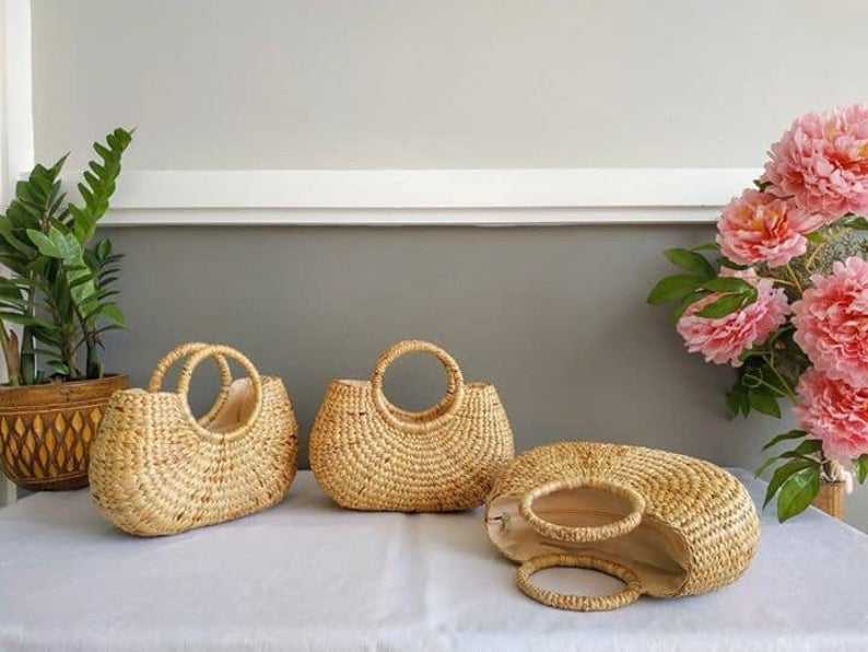 High Quality Women's Water Hyacinth Handbag Embroidery Pearl Wholesale Price Bohemian Vintage King Craft Viet Custom Logo