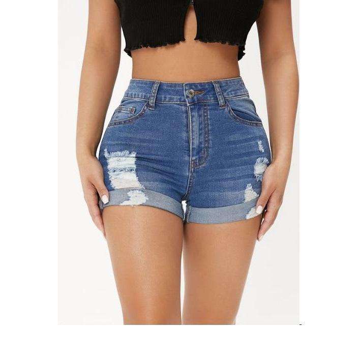 Wholesale Price Women High Quality Ripped Denim Short Cotton Jeans 100% Vintage Wash Distressed Denim Women Shorts Jean Pant