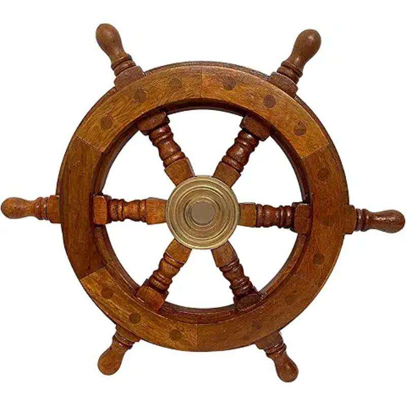 Wholesale Price Wooden Ship Wheel Wall Decoration with Brass Center Hub Turned Spokes and Handles Maritime Nautical Boat