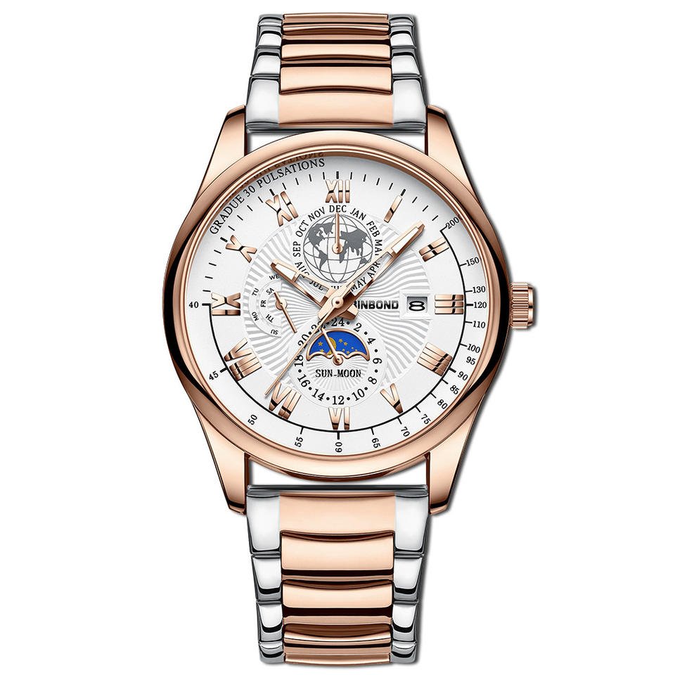 Wholesale Prices Binbond 3982 Men's Quartz Business Steel and Leather Belt Watch High-quality Luminous Calendar Function