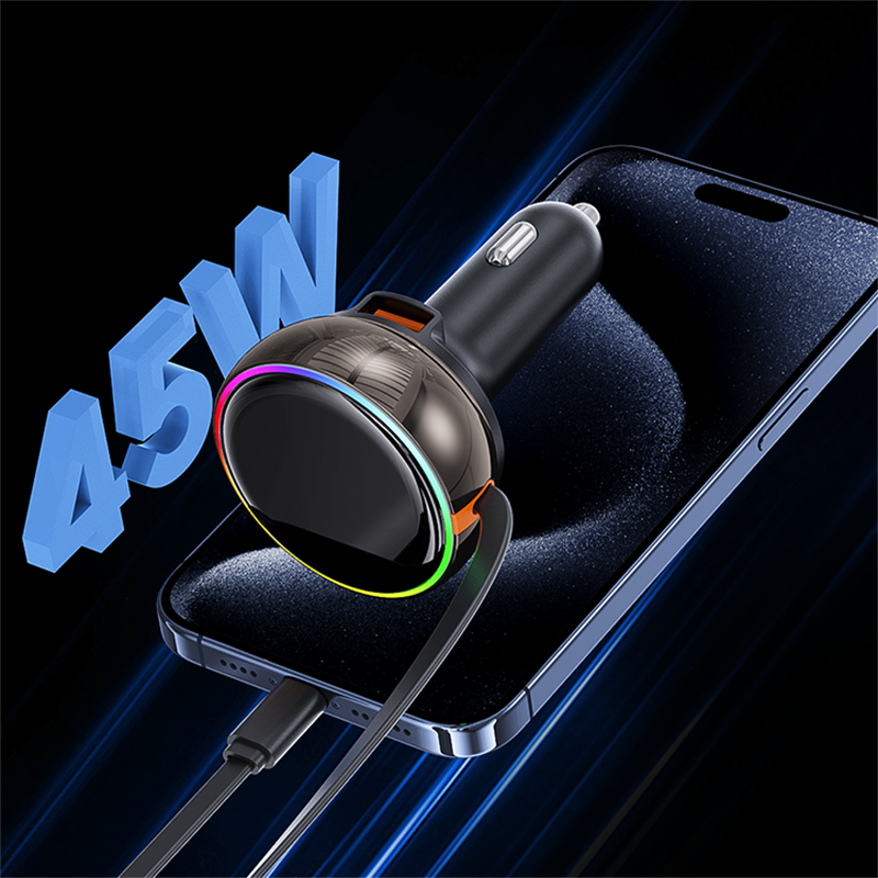 Wholesale Prices Car Charger 45 w Fast Charging Pd Usb c Car Charger Retractable refresh 45w car phone charger type c to c