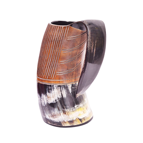 Indian Handmade Natural Crafts Wholesale Exported Carved Horn Beer Stein Viking Drinking Cup for Home Use