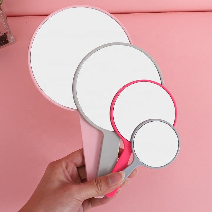 Wholesale Private Handheld Label LOGO Plastic Portable Handheld Round Makeup Mirror With Handle