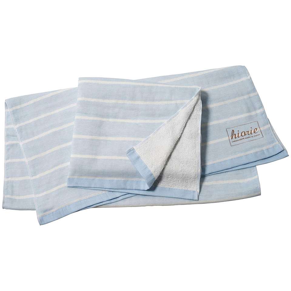 [Wholesale Products] HIORIE Osaka Striped Pattern Gauze Towel 100% Cotton Bath Towel 60cm*130cm Low MOQ Washable Dry Sky Blue