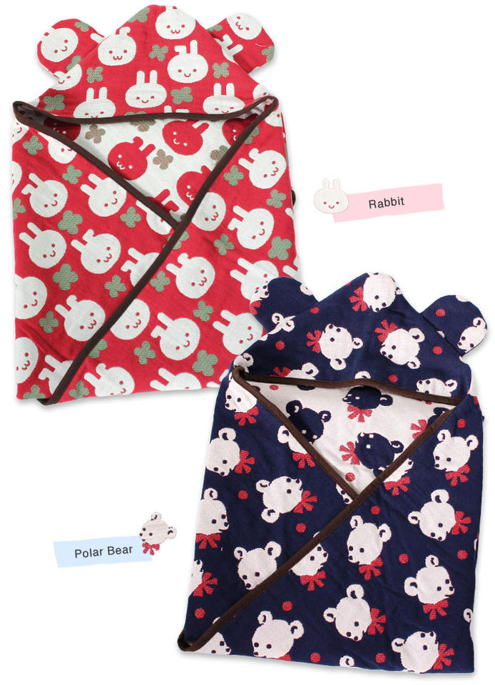 Wholesale 5-Layered 100% Cotton Fabric Japanese-Made Baby Swaddle Blanket Breathable Ear Design 84cm*84cm Low MOQ Red All-Season