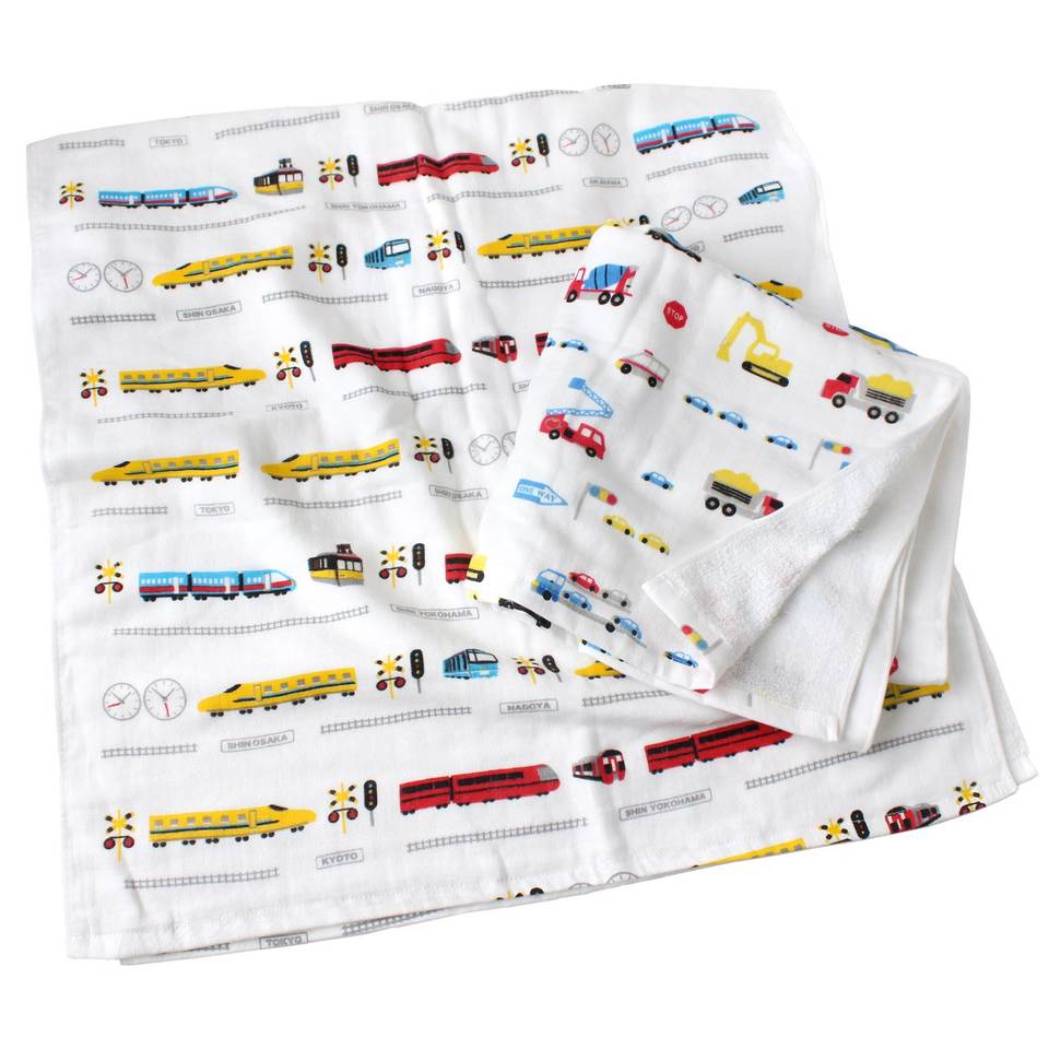 [Wholesale Products] Osaka Japan Printed Gauze Towel 100% Cotton Bath Towel Hand Face Towel Car Design Cute Soft Low MOQ Train
