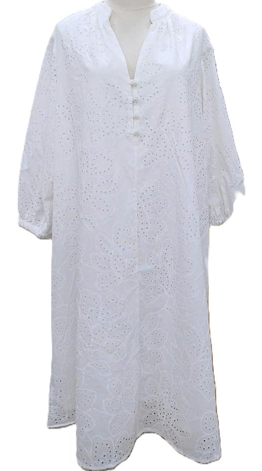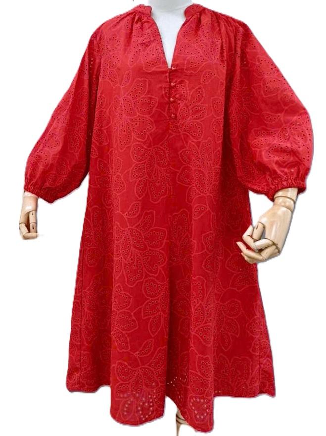 Wholesale Professional Loose Fit 100% Cotton Eco-Friendly Eyelet Dress Natural Long Puff Sleeves V-Neck. for Office Daily Wear