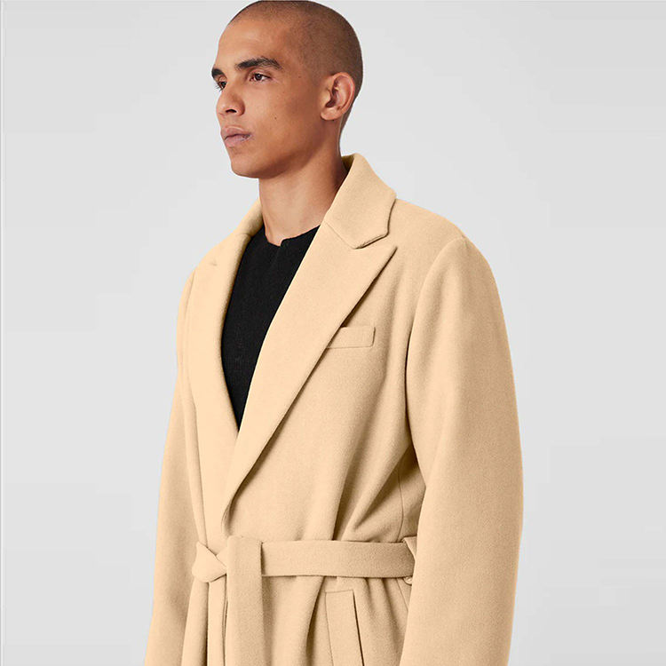 Wholesale Professional Quality Men Winter Overcoat Button Long Coats Quick Dry Cotton Polyester Knitted Fabric Long Sleeves Wool