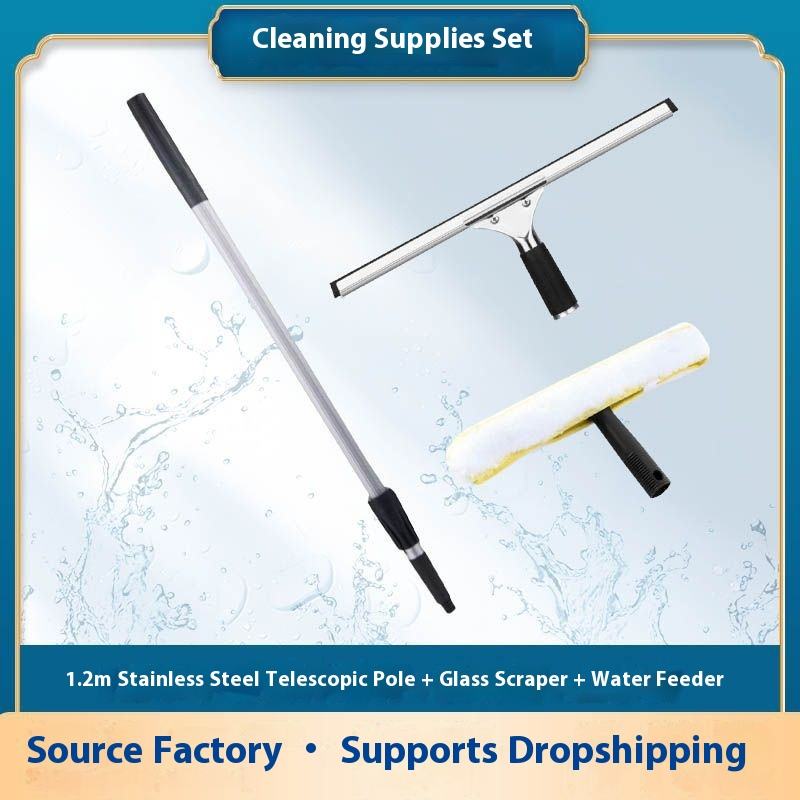 Wholesale Professional Window Squeegee With Rubber Lip Stainless Steel Long Handle Bathroom Shower Mirror Glass Cleaning Tool