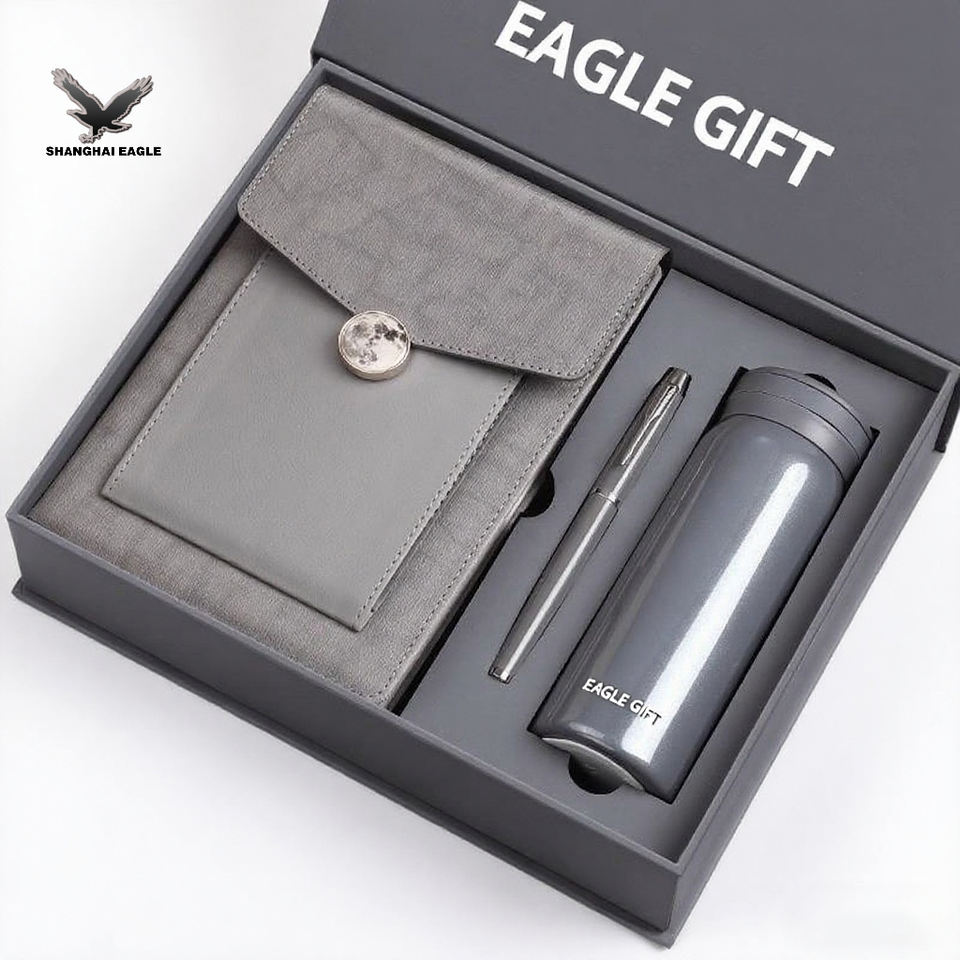 Wholesale Promotional Corporate Luxury Business Gifts-Personalized Dark Gray Notebook Pen Gift Set Custom Logo for Giveaways