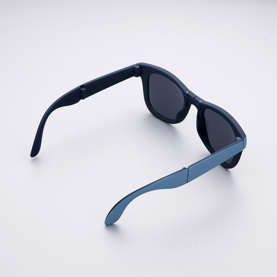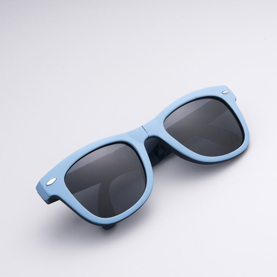 Wholesale Promotional Portable Compact Design Two Tone Gray Blue Sunglasses Unisex Pocket-Foldable Custom Logo Protective
