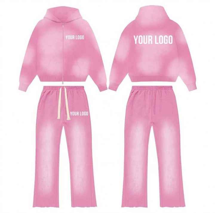 Wholesale Pullover Blank Plain Acid Washed Oversized Hoodie and Sweatpants Set Sweat Suits Unisex Tracksuit