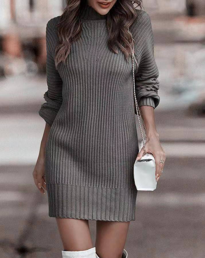 Wholesale Pullover Turtleneck Sweater Ladies Winter Long Woman Knit Sweater Dress Women's Clothing