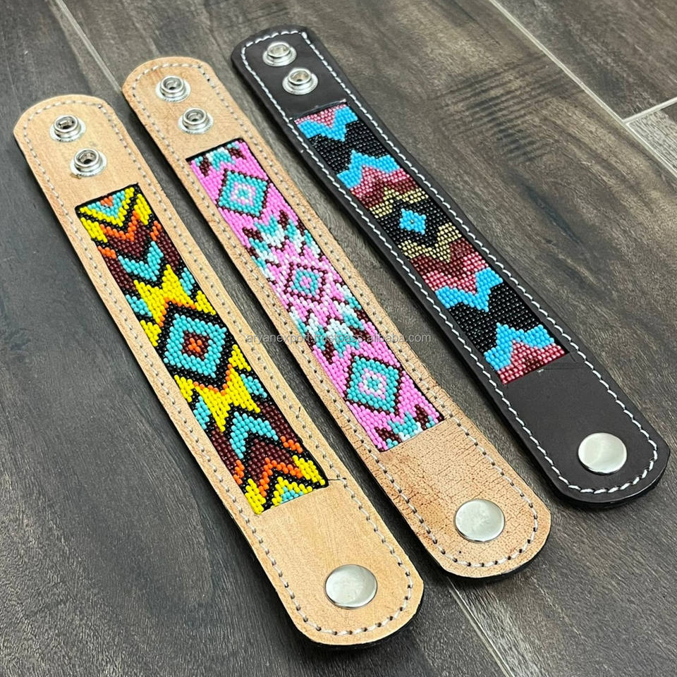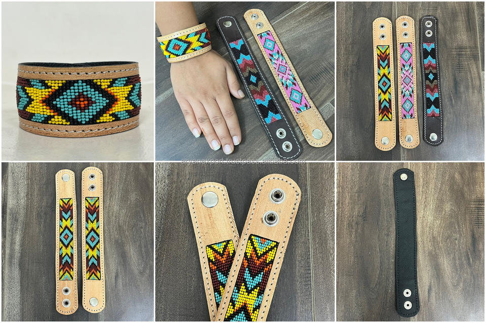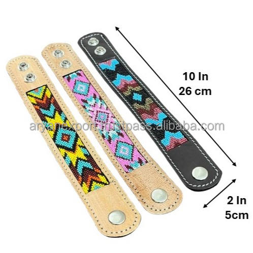 Product name:Hand Tooled Genuine Leather Beaded Cuff Bracelet