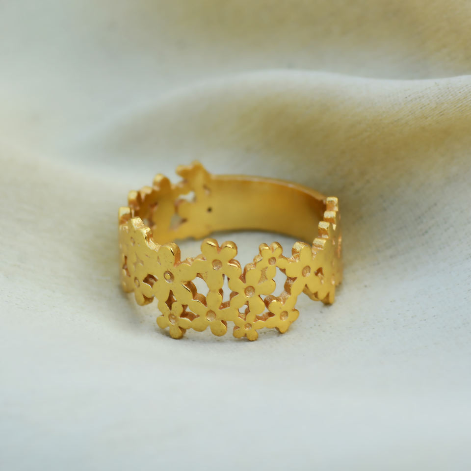 Wholesale Pure 18K Gold Plated Jewelry Handmade Flower Adjustable Rings for Women Luxury Wedding Band Accessories for Girl