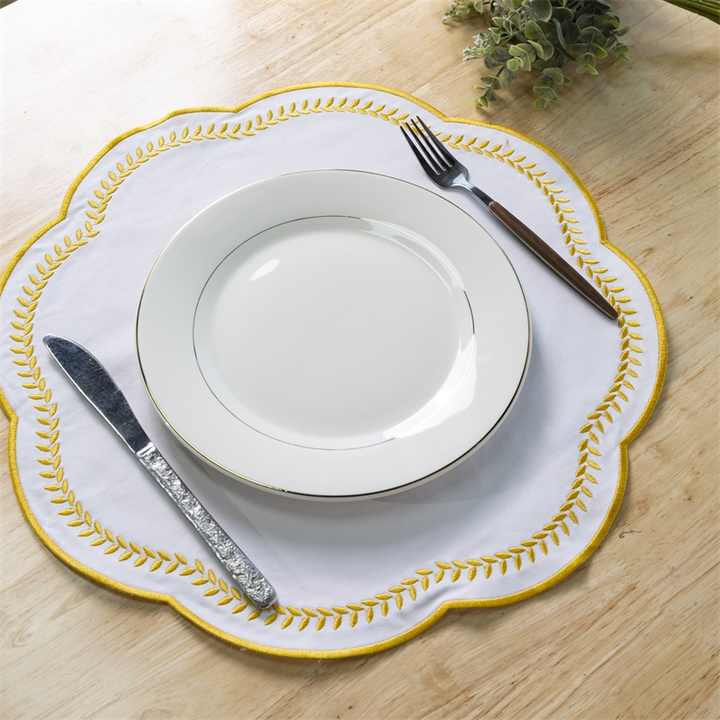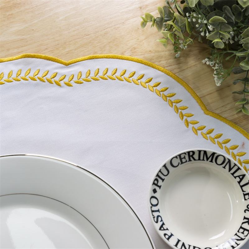 Wholesale Pure Cotton Scalloped Edge Embroidery Tableware Cutlery Case Napkin for Luxury Dining Event Cutlery Pocket Holder