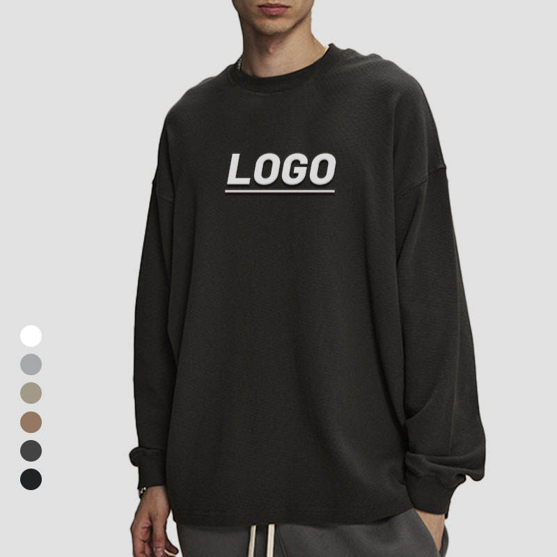 Wholesale Pure Cotton Solid Color Unisex Long-sleeved T-shirt Loose Casual Round Neck Knitted Bottoming T-shirt