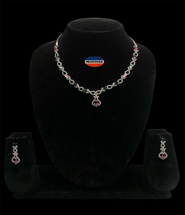 Wholesale Pure Diamond Necklace Set for Ladies Elegant Fashion Jewellery Set with Earrings for Wedding Party and Festive Gifting
